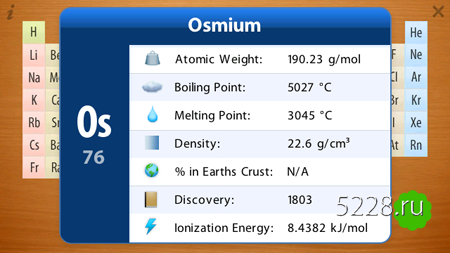 Очень удобная таблица Менделеева, достаточно просто выбрать любой элемент как перед вами появится вся информация о данном элементе.