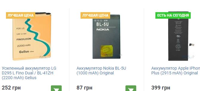 Каталог аккумуляторов для телефонов
