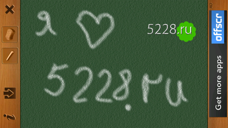 Все как в школе - доска, мел и губка... и ваша фантазия. Рисуйте приколы, формулы, играйте в крестики нолики, стирайте все это губкой и будьте уверены: вы не запачкаетесь. Все ваше художество можно сохранить на телефон в папку Imаges .
